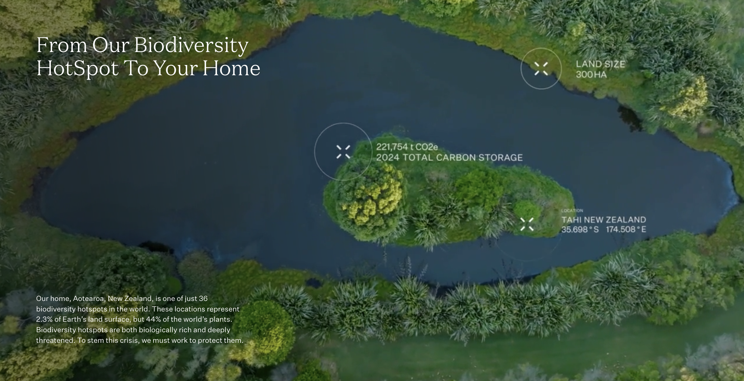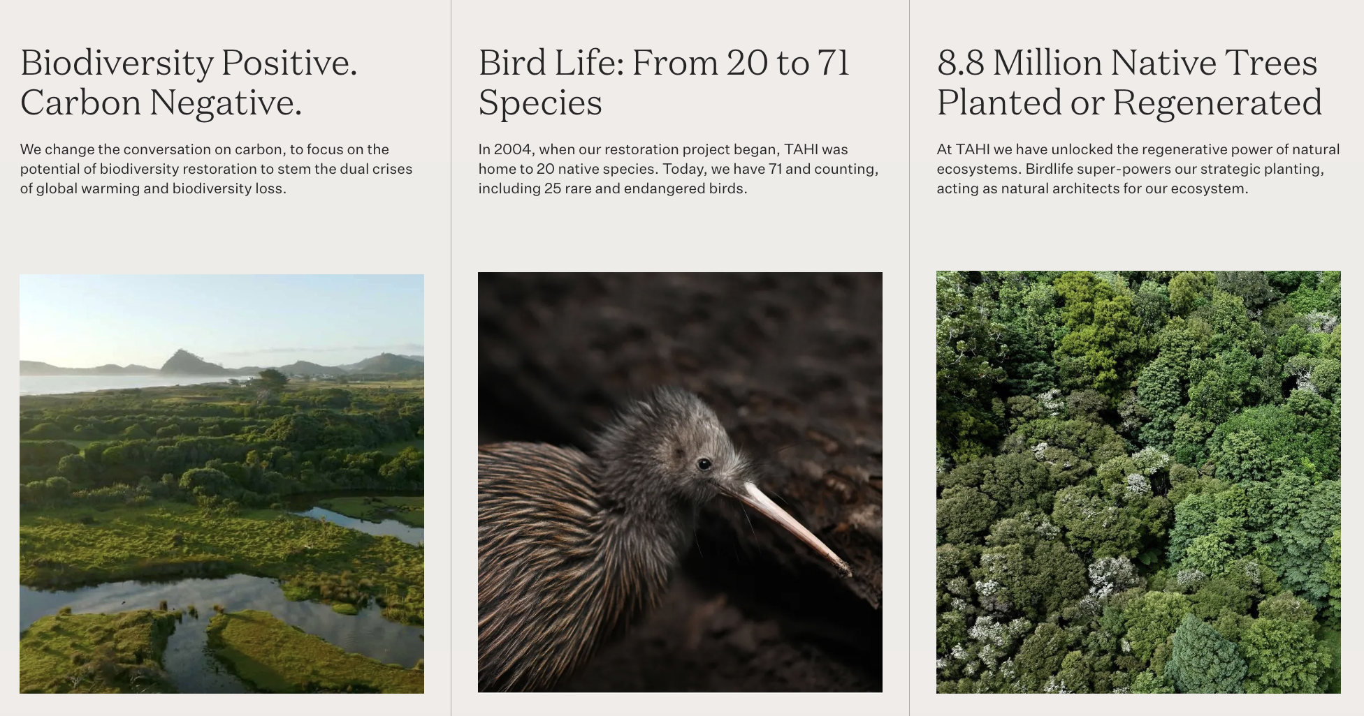 TAHI launched a new website dedicated to showcasing its science-led approach to ecosystem restoration. This digital platoform translated complex environmental data into an immersive and accessible brand experience. The site brings TAHI’s biodiversity story to life, showcasing the regeneration of forests, the revival of wetlands, and the return of native wildlife in a way that is both educational and emotionally engaging.